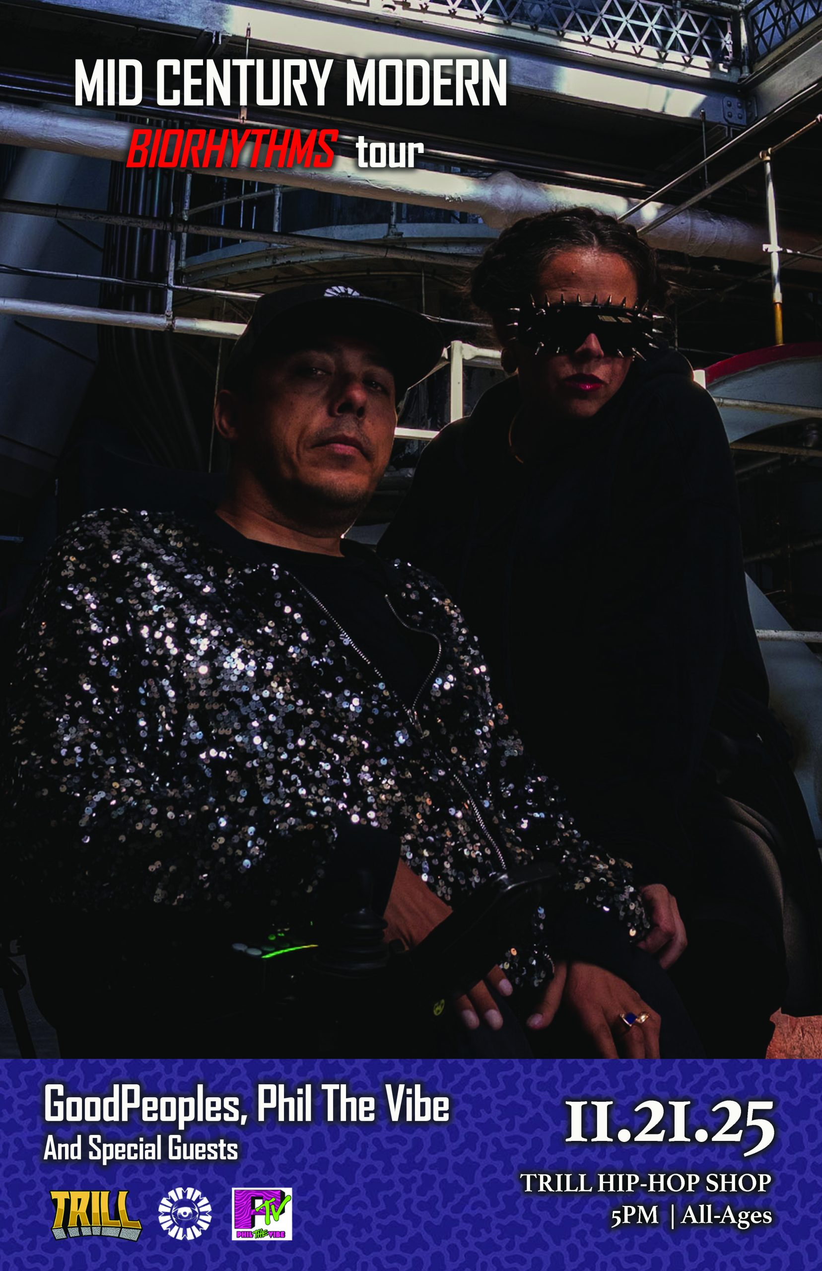 The Biorhythms Tour is rolling into Phoenix and making a stop right here at TRILL Hip Hop Shop! We’re talking about a completely FREE, all-ages hip hop experience featuring Mid Century Modern, Good People, and DJ Phil the Vibe. This isn’t just another show – this is community, culture, and pure hip hop energy all under one roof.