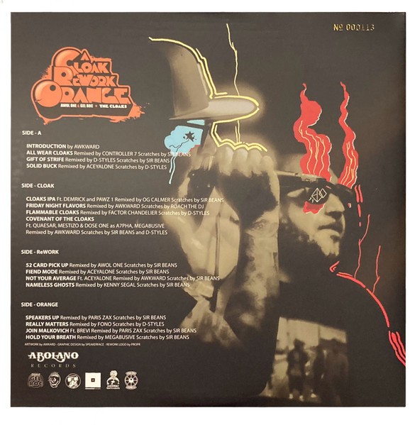 A Cloak Rework Orange stands as a bold reimagination of their third installment, featuring an impressive lineup of the planet's best DJs and producers. The collaborative effort includes talents such as Aceyalone, Controller7, D-Styles, OG Calmer, Kenny Segal, Factor Chandelier, Megabusive, Paris Zax, Fono, Awol One, and Awkward, the original producer of the skillfully crafted A Cloakwork Orange (2022).